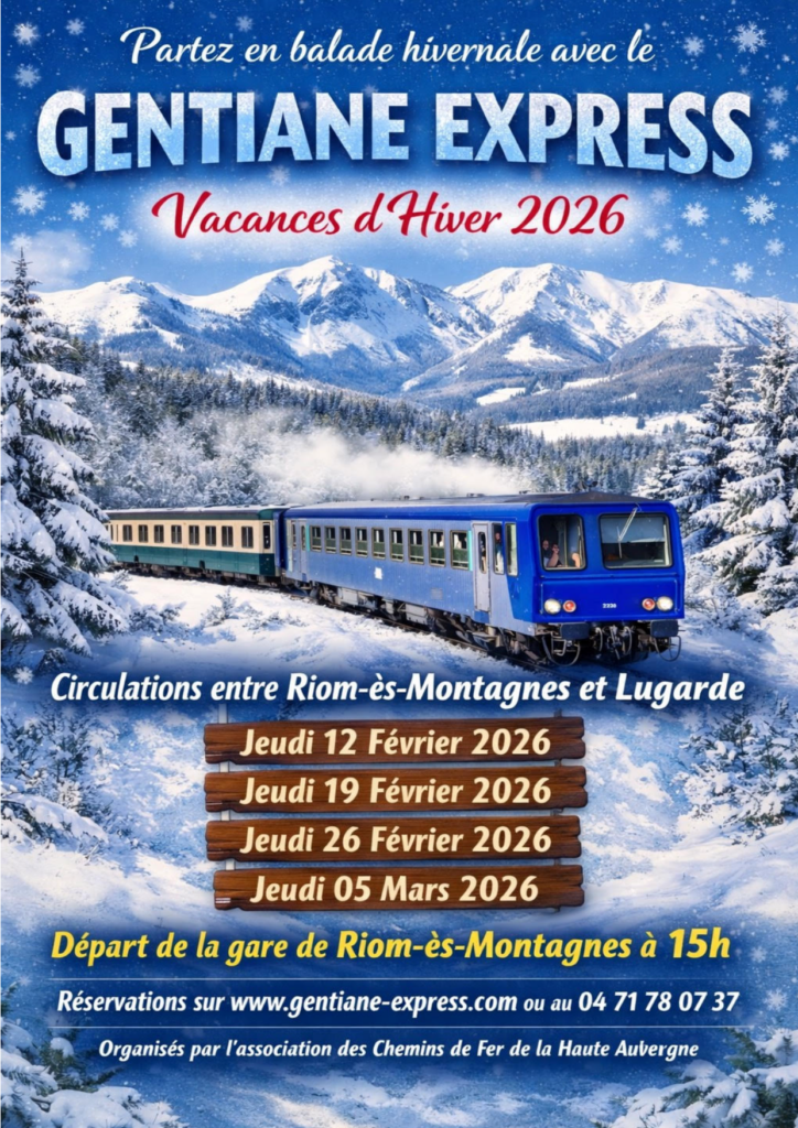 Pour les vacances d’hiver 2026 le Gentiane Express vous proposera 4 circulations pour profiter des paysages hivernaux du Pays Gentiane.
