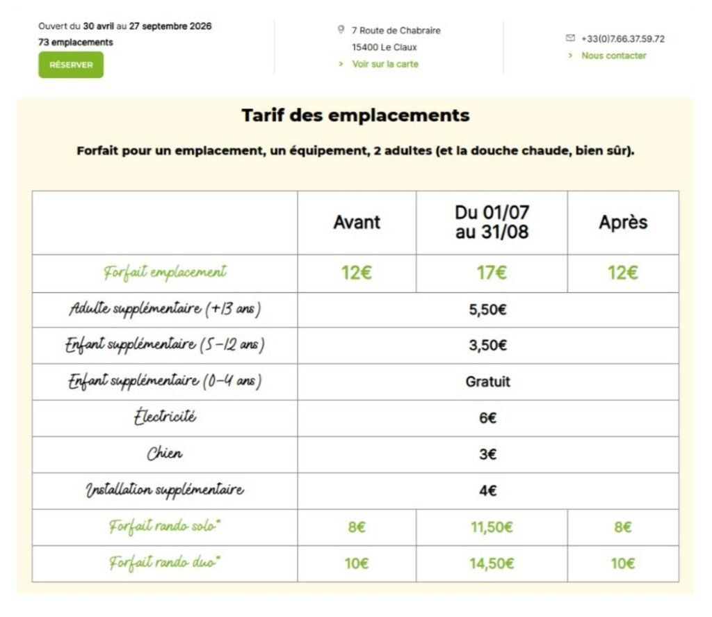 Mail : campingleclaux@onlycamp.fr